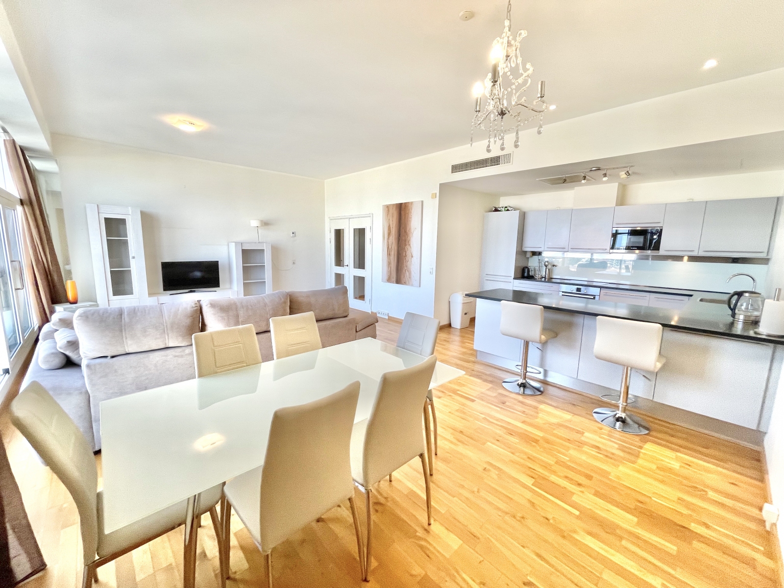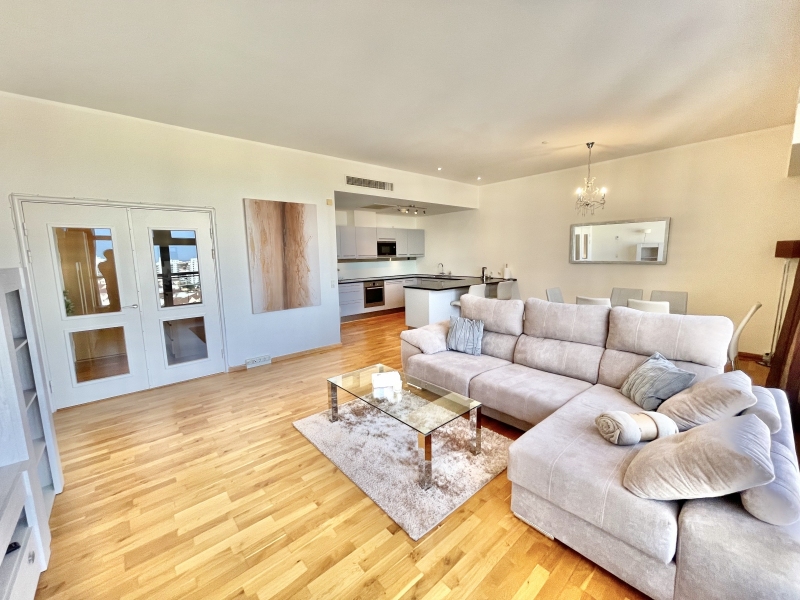 This property is well furnished, and very spacious. It has a high spec, contemporary, open-plan kitchen with top appliances and breakfast bar leading onto a spacious dining/living room area with views towards Spain.