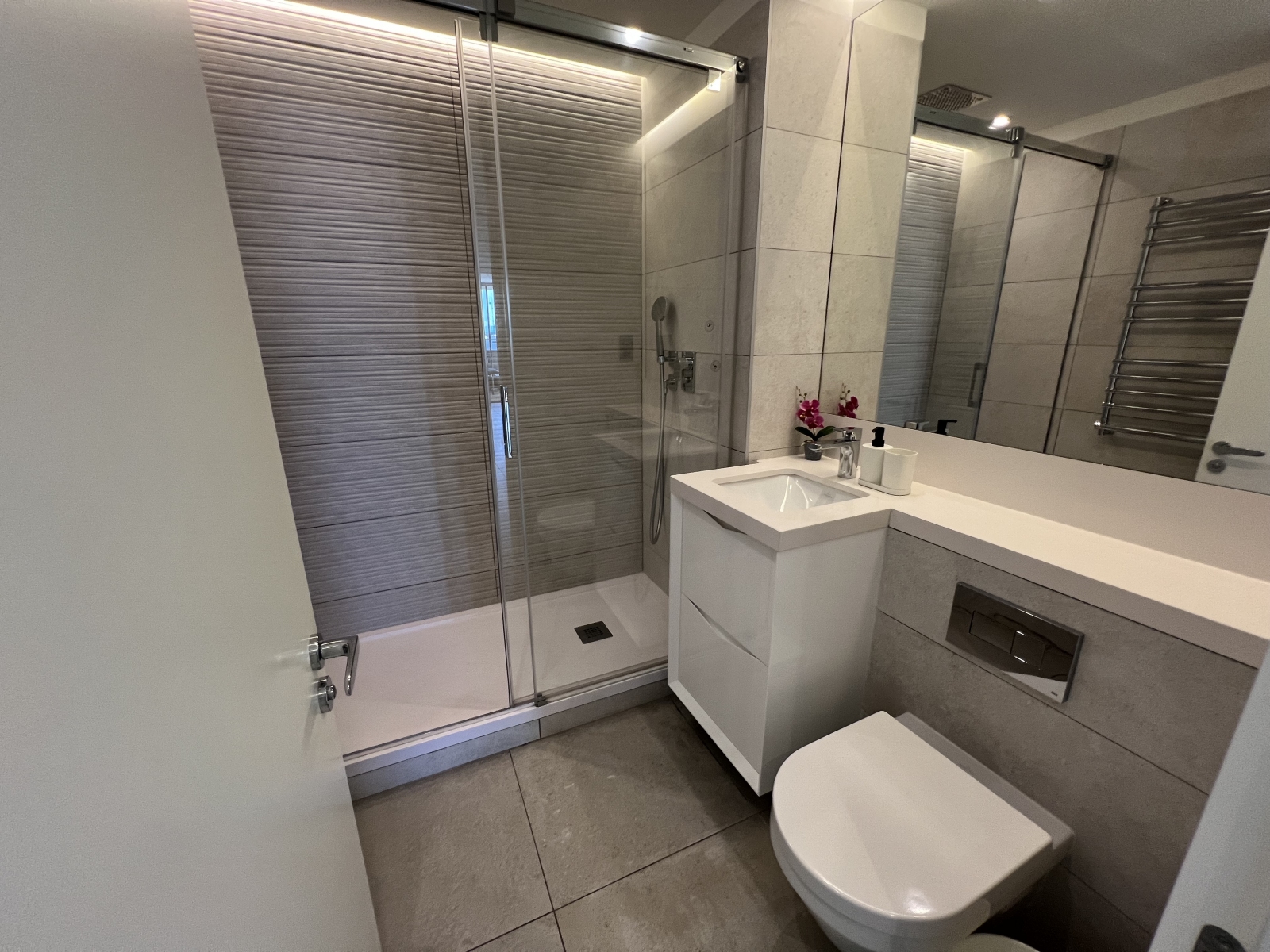 Finished to an impeccable standard, the property boasts underfloor heating in bathrooms, fitted wardrobes, and efficient reverse air conditioning, ensuring year-round comfort. Residents of EuroCity enjoy access to an outstanding lifestyle offering, including beautifully landscaped gardens, decked terraces and swimming pools, a state-of-the-art fitness centre, an array of shops, cafés and restaurants, secure allocated parking, bicycle storage, and a professional concierge service.