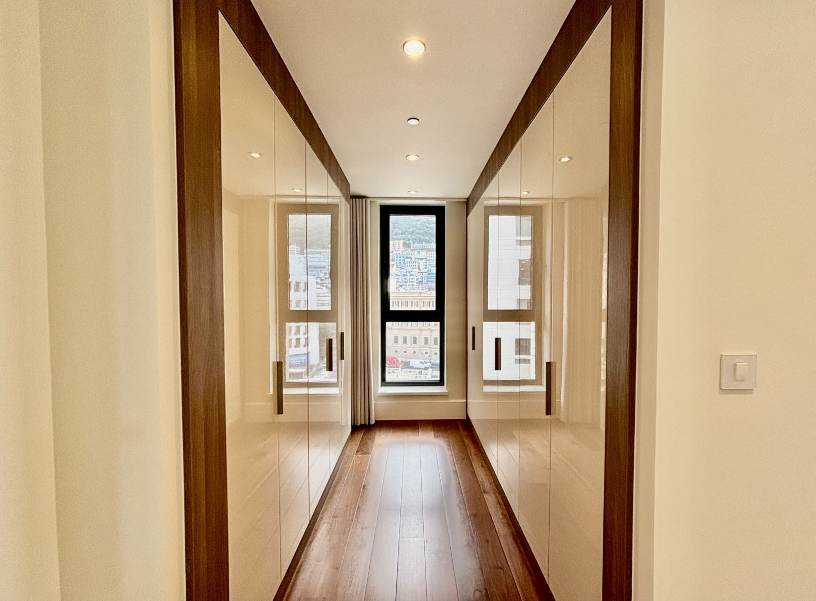 The property welcomes you with an inviting entrance hallway featuring a convenient storage cupboard ideal for coats, shoes and general storage. Both bedrooms enjoy east-facing views towards The Rock and Town. The master bedroom benefits from an en-suite bathroom and walk-in wardrobe, while the second double bedroom with fitted wardrobe is served by a modern family bathroom.