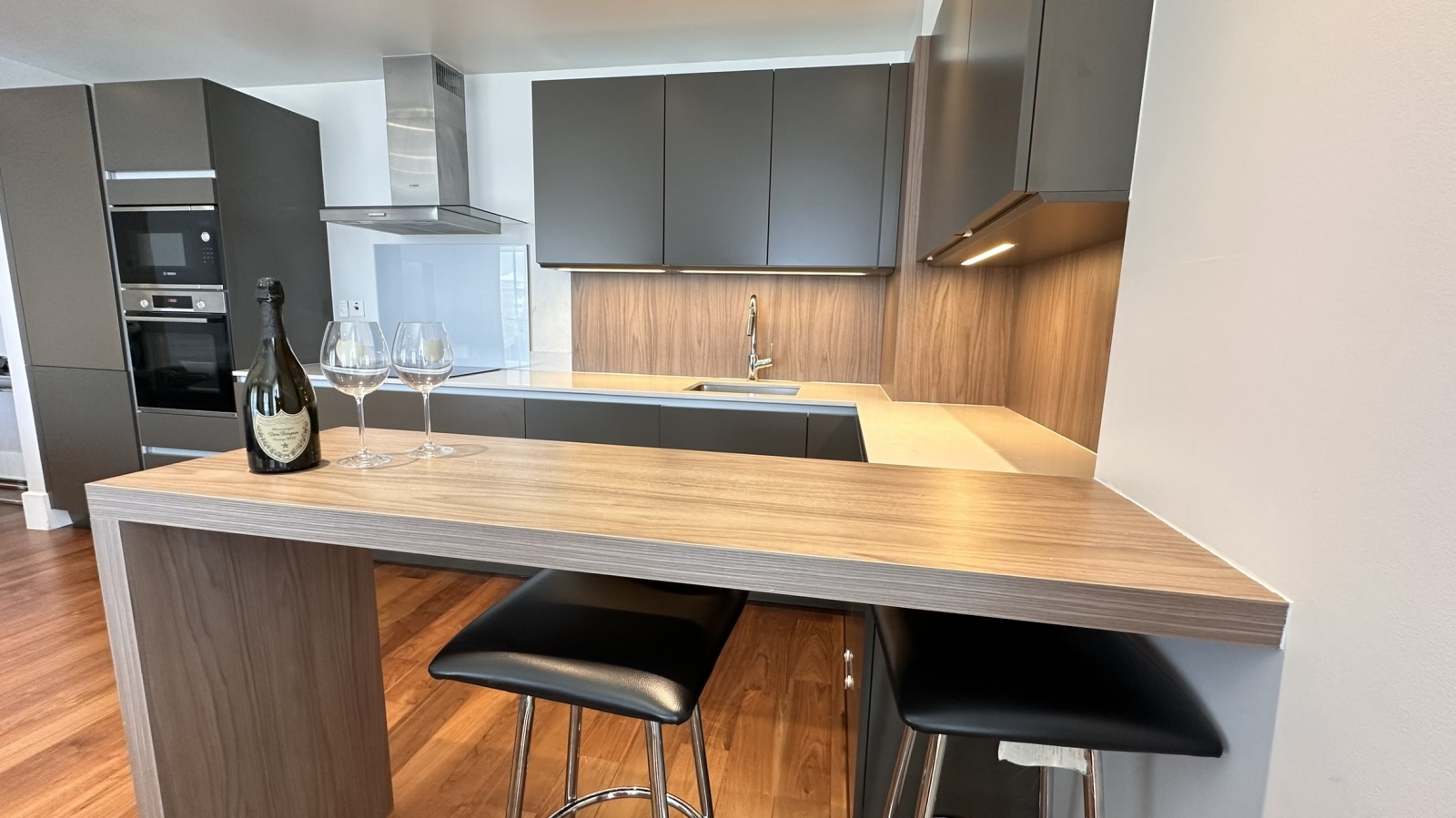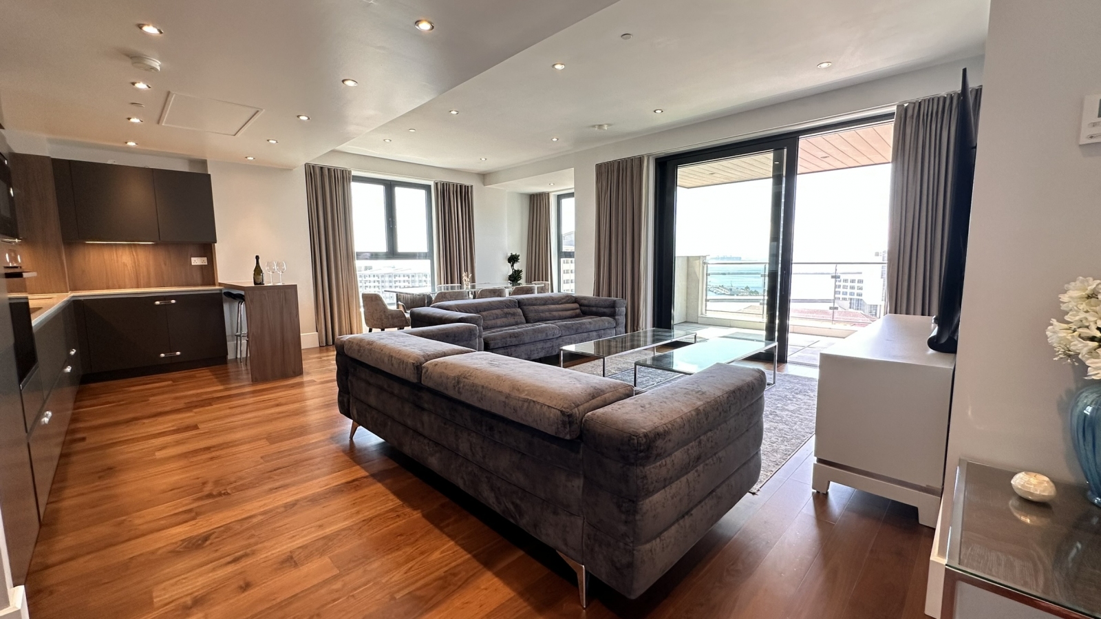 BMI Group is delighted to present this exceptional state-of-the-art residence in the heart of Midtown. Designed and finished to the highest standards, this immaculate and beautifully appointed apartment combines modern sophistication with timeless charm. It features three generously sized double bedrooms, each equipped with bespoke, high-end fitted wardrobes. The home also offers two luxurious bathrooms, a convenient guest toilet, and a fully equipped utility area complete with a washer, dryer, shelving, and ample storage space.