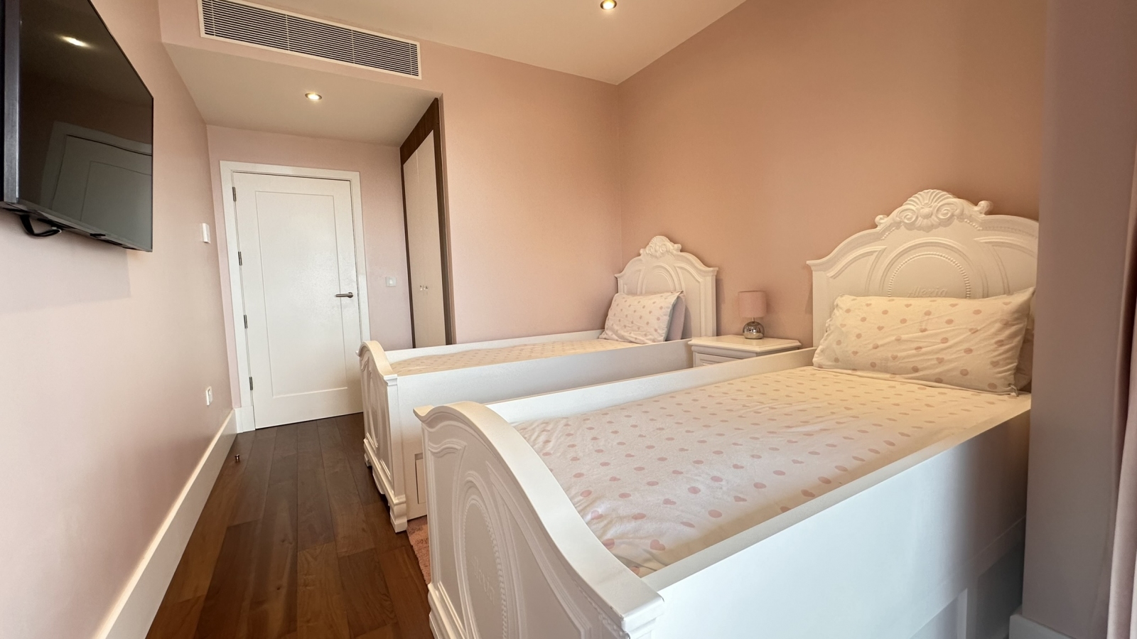 From the moment you enter the open-plan kitchen, dining, and living area, you are welcomed by a seamless flow of space and light. The contemporary design, combined with a warm and inviting ambiance, makes this the perfect setting for both relaxation and entertaining. The living area opens onto a private balcony of over 21 square meters, ideal for al fresco dining while taking in stunning views of the sea, the swimming pool, and even across to Africa — a perfect spot to enjoy captivating sunsets.