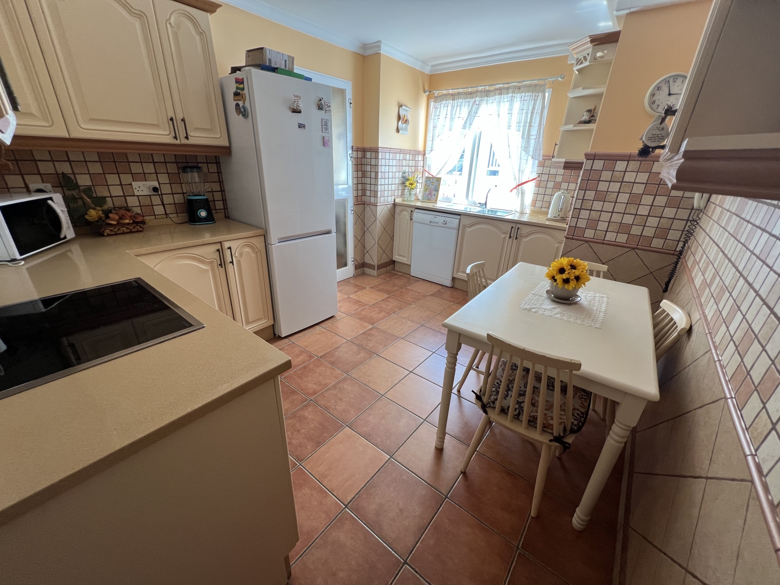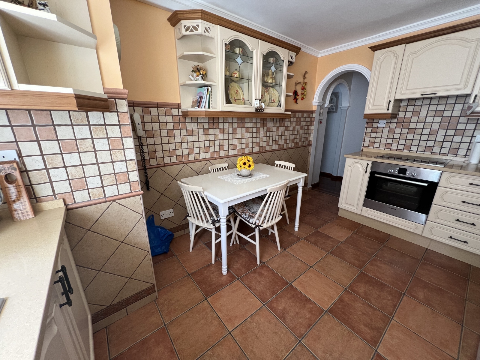 The well-sized kitchen is both practical and functional, complete with an adjoining utility room that offers additional storage and houses the washing machine. The bathroom is thoughtfully designed and features a walk-in shower.