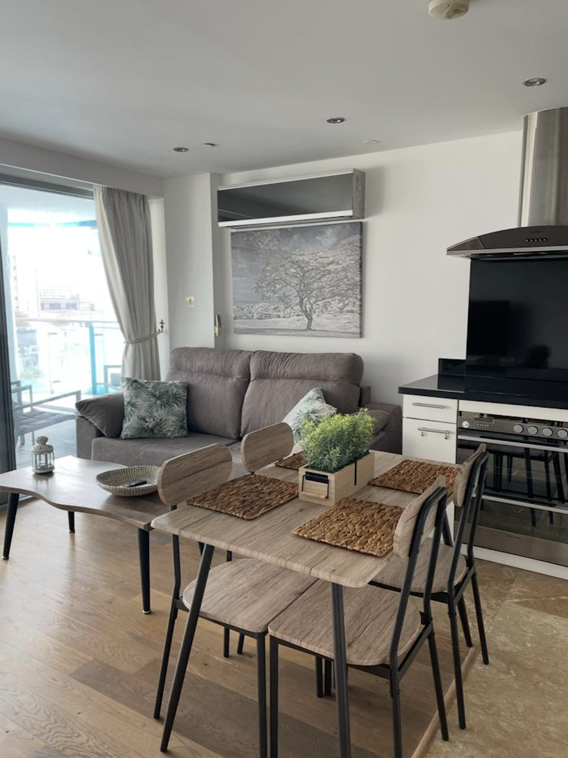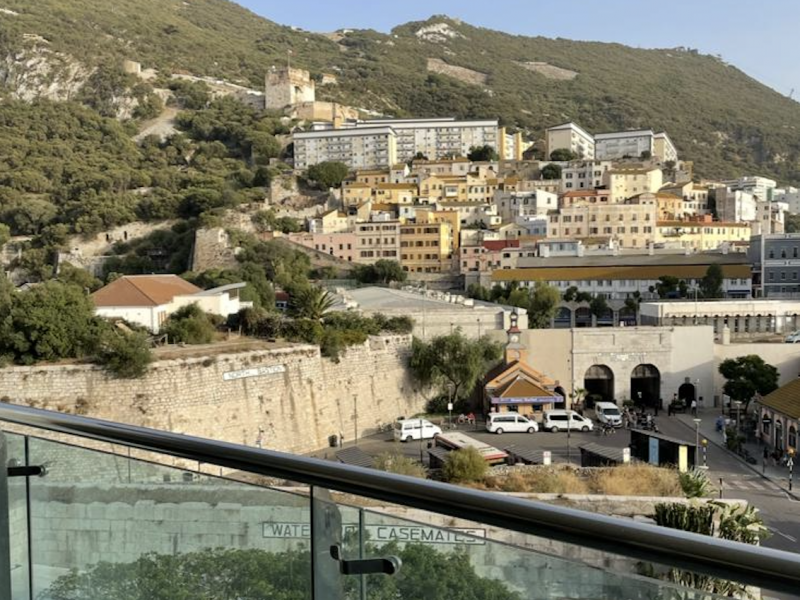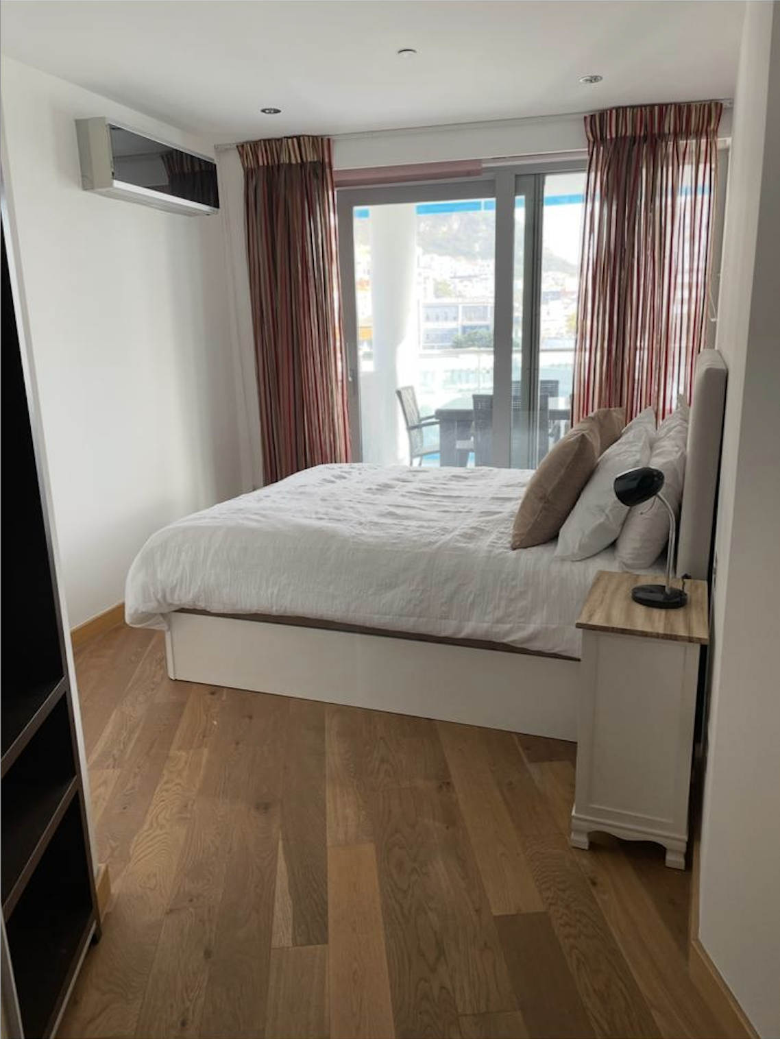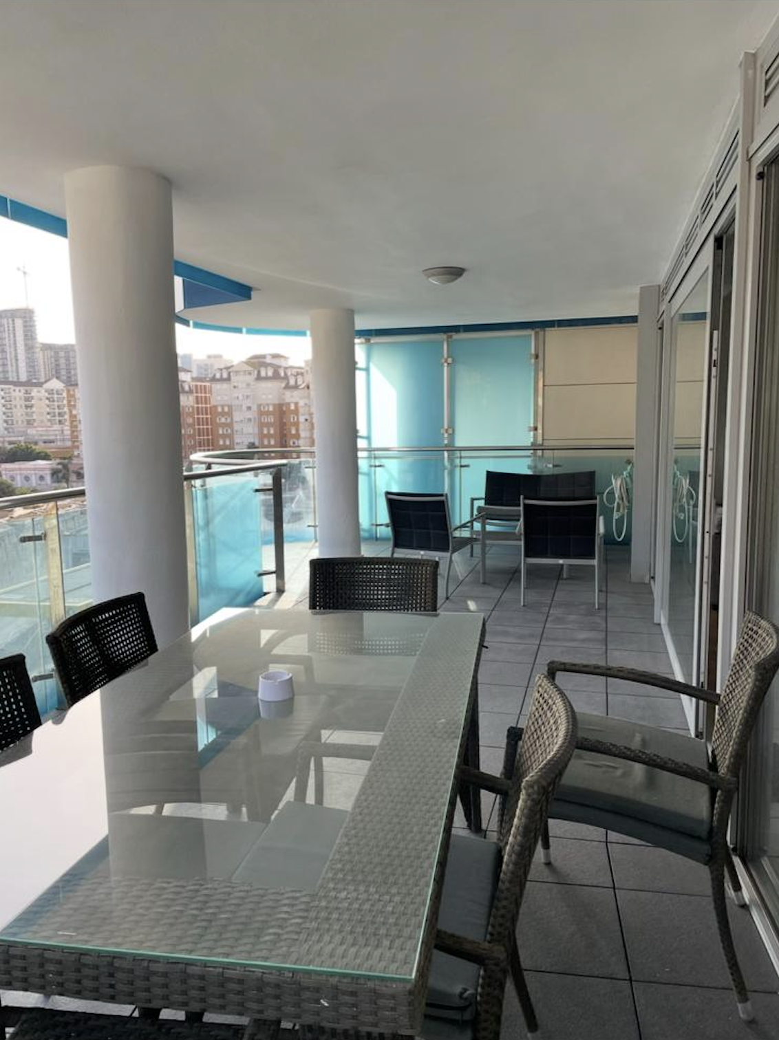Located on a desirable mid to high floor, the property enjoys stunning views of the Rock and Bay, with tasteful finishes throughout. The spacious entrance hall leads into a bright and modern open-plan living area and fully fitted kitchen, opening onto an impressive 28m² South/East-facing terrace—perfect for entertaining, dining al fresco, or simply relaxing in the sunshine.