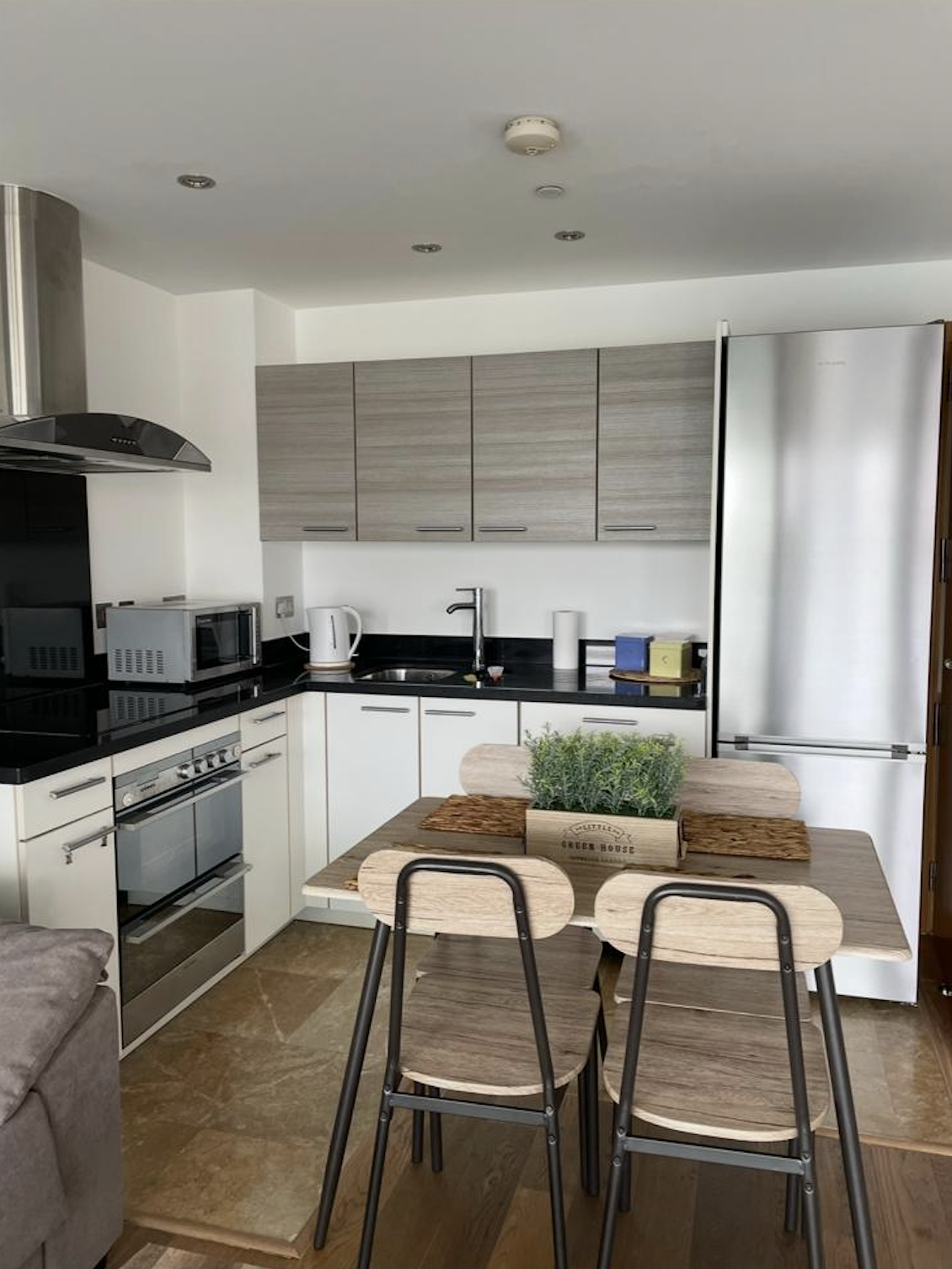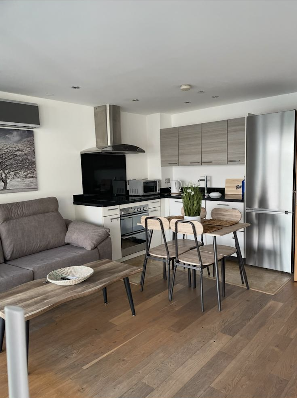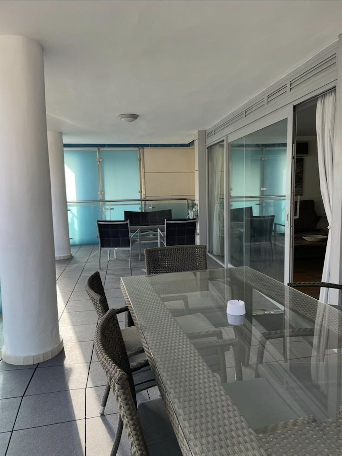 Located on a desirable mid to high floor, the property enjoys stunning views of the Rock and Bay, with tasteful finishes throughout. The spacious entrance hall leads into a bright and modern open-plan living area and fully fitted kitchen, opening onto an impressive 28m² South/East-facing terrace—perfect for entertaining, dining al fresco, or simply relaxing in the sunshine.