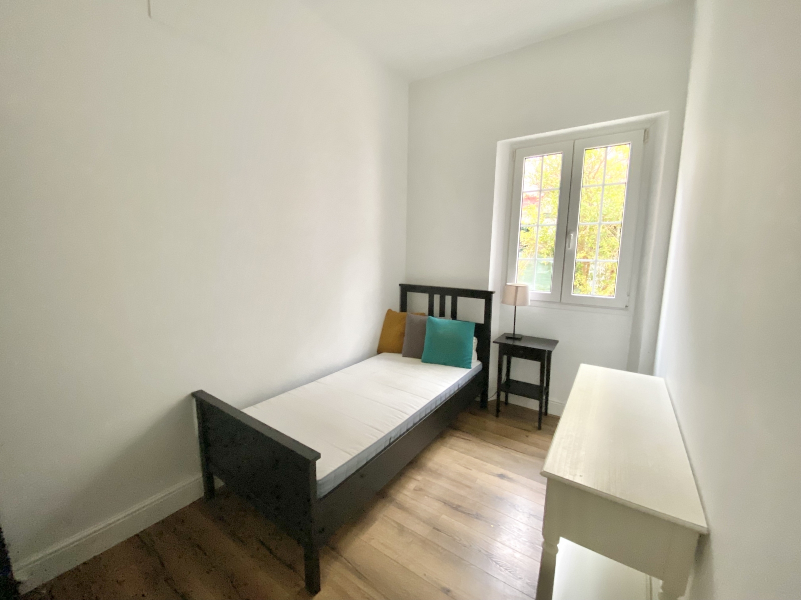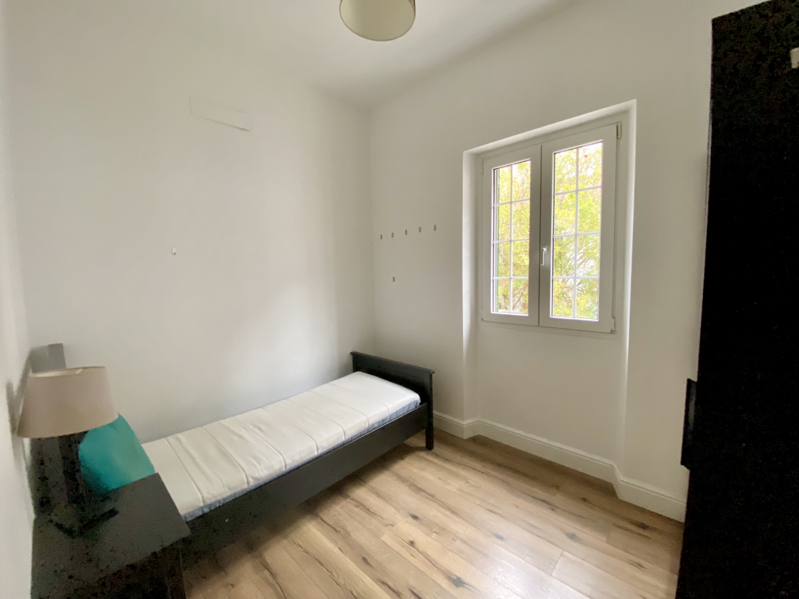 The apartment includes three well-proportioned bedrooms – one double master bedroom and two singles – offering flexibility for families and/or guests. Both bathrooms are modern, with one featuring a bathtub and overhead shower.