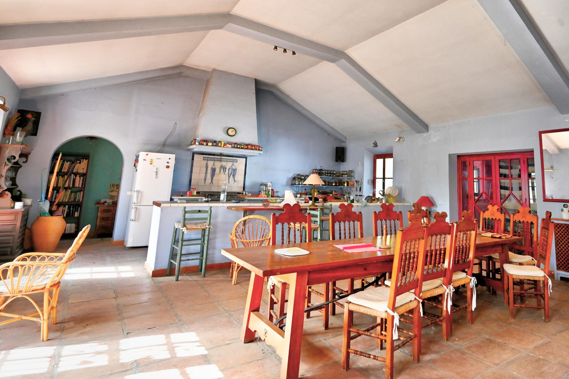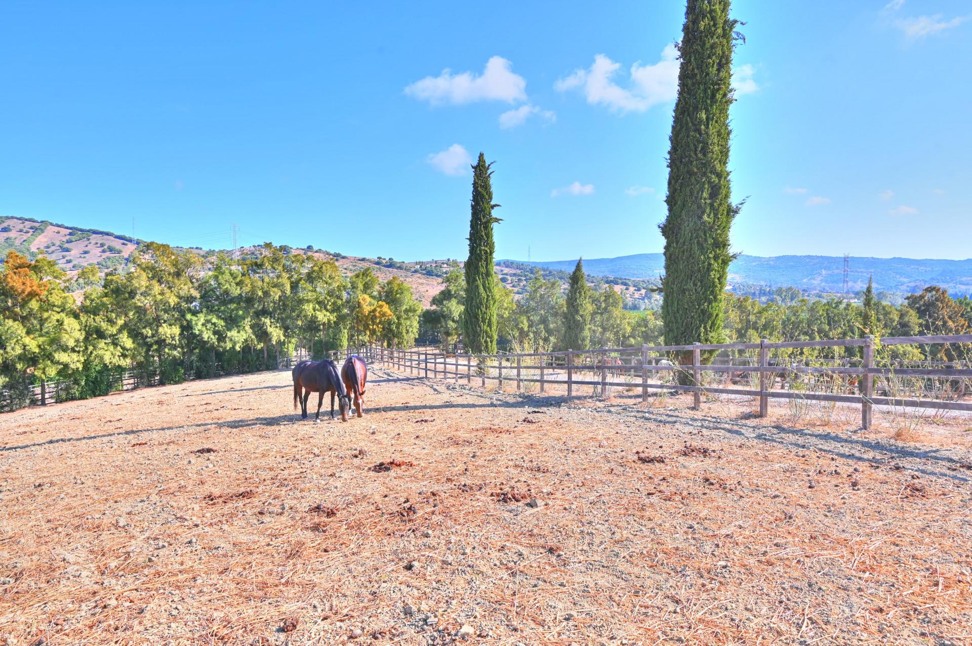 At the heart of the property lies a beautiful Andalusian-style finca, offering 948 m² of built space arranged around a charming central courtyard that overlooks the swimming pool and the surrounding mountains. The property blends rustic character with renovation potential, making it an ideal canvas for transformation into a luxury equestrian retreat or boutique countryside estate.