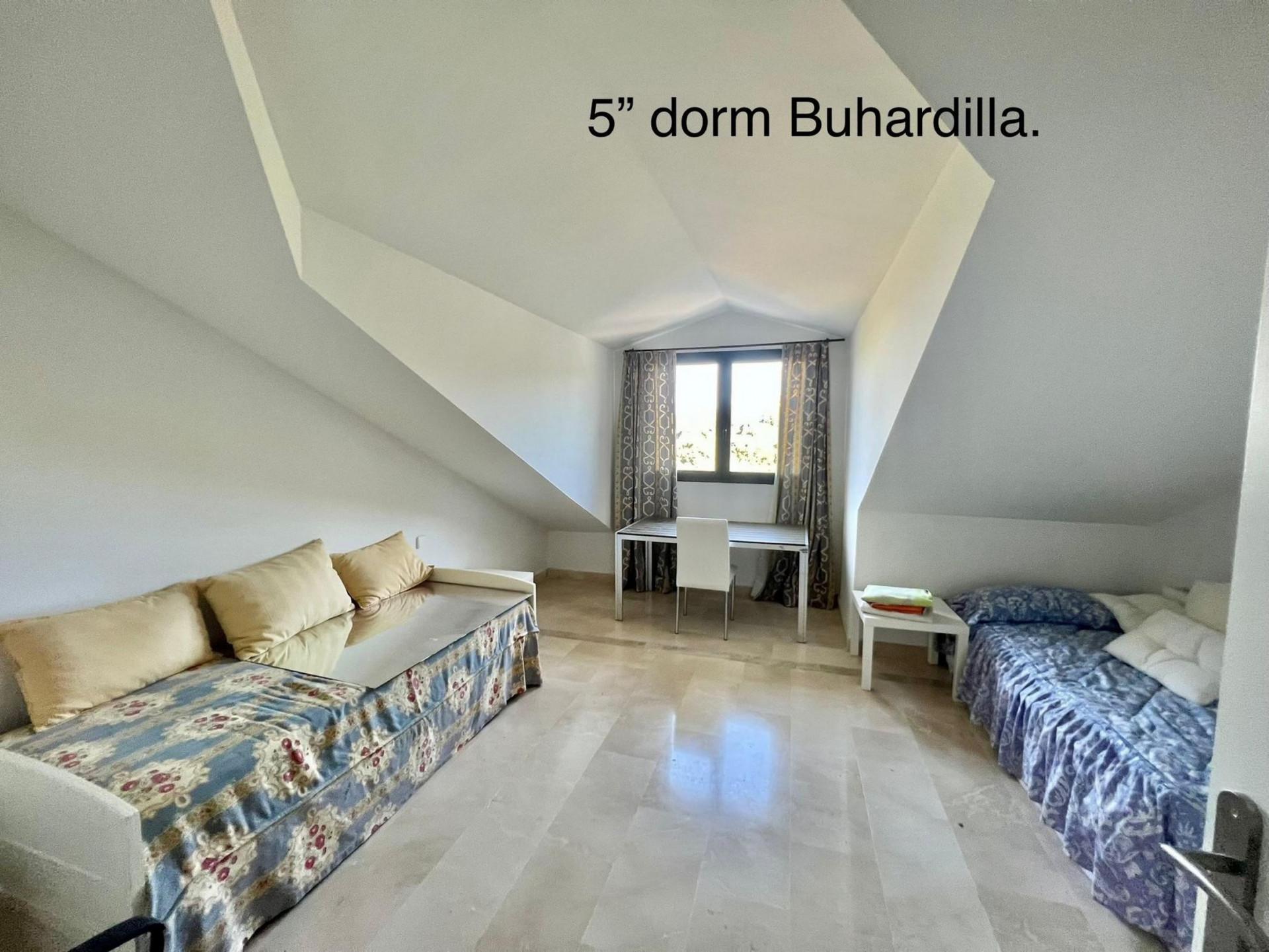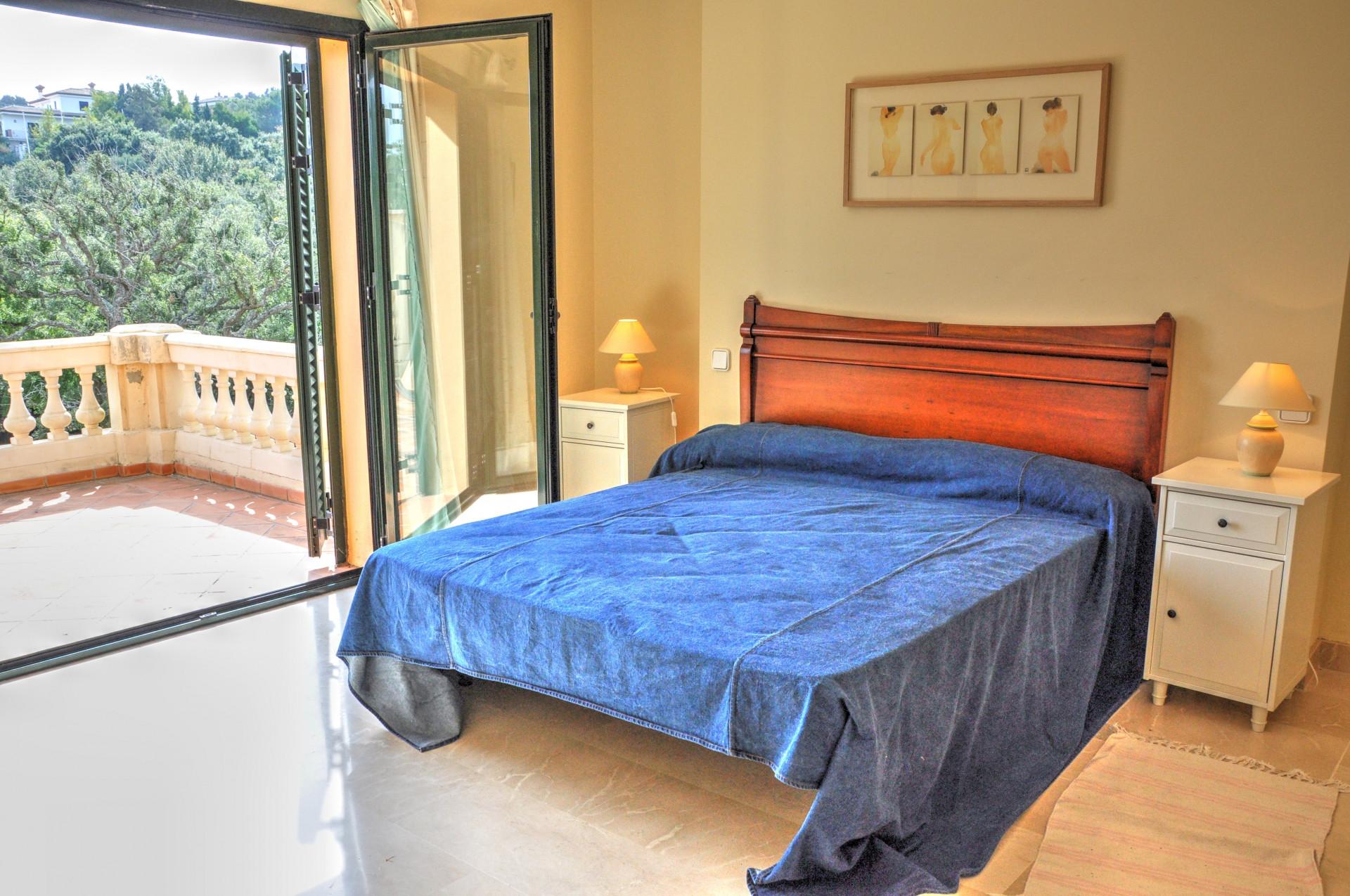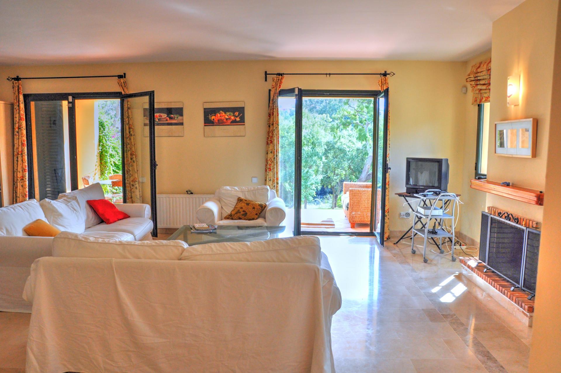 This semi-detached house is situated at number eight within the Sotogolf urbanization. It boasts a generous 2000 square meter plot and a spacious 480 square meters of built area, comprising five bedrooms and four bathrooms. On the first floor, you'll find the entrance hall, a spacious living room, a well-appointed kitchen, a bedroom, and a bathroom, along with a charming porch offering access to the garden. Ascending to the second floor, you'll discover three bedrooms accompanied by two bathrooms, including the master bedroom with an en suite bathroom. The master bedroom features a king-size bed measuring 2 meters wide, while another bedroom offers two beds measuring 1.35 cm each, and the third bedroom has two beds measuring 90 cm each. The master bedroom and one additional bedroom share a terrace overlooking the scenic cork oak forest, facing east, while the third bedroom enjoys its own terrace facing west. The attic space presents another bedroom equipped with a trundle bed and an additional 90 cm bed, along with a double bathroom. The garage provides ample space for four cars, along with a designated children's playroom. Just a minute's stroll from the house, residents can access the urbanization's swimming pool and paddle tennis court, ensuring leisure and recreational amenities are close at hand.