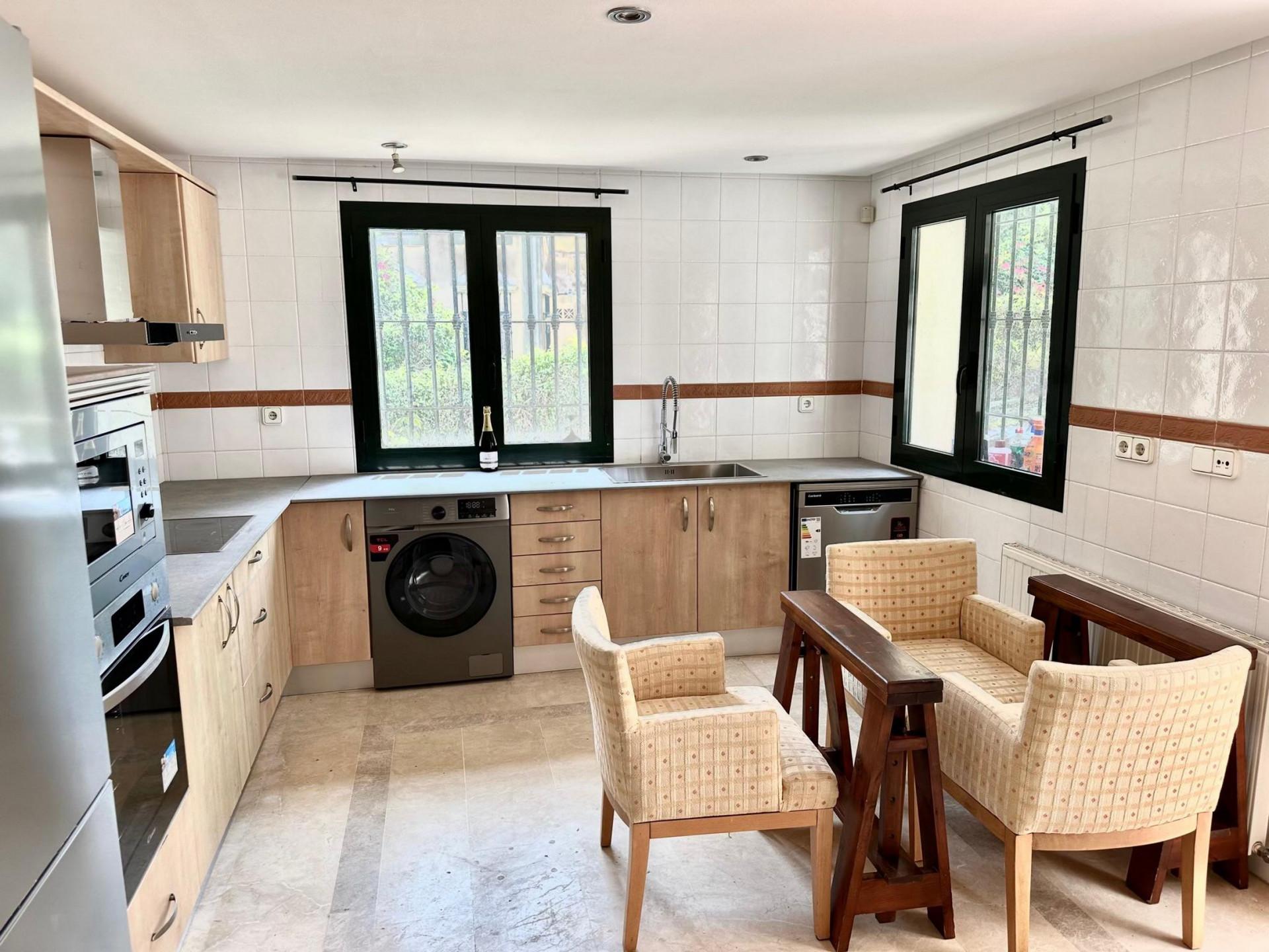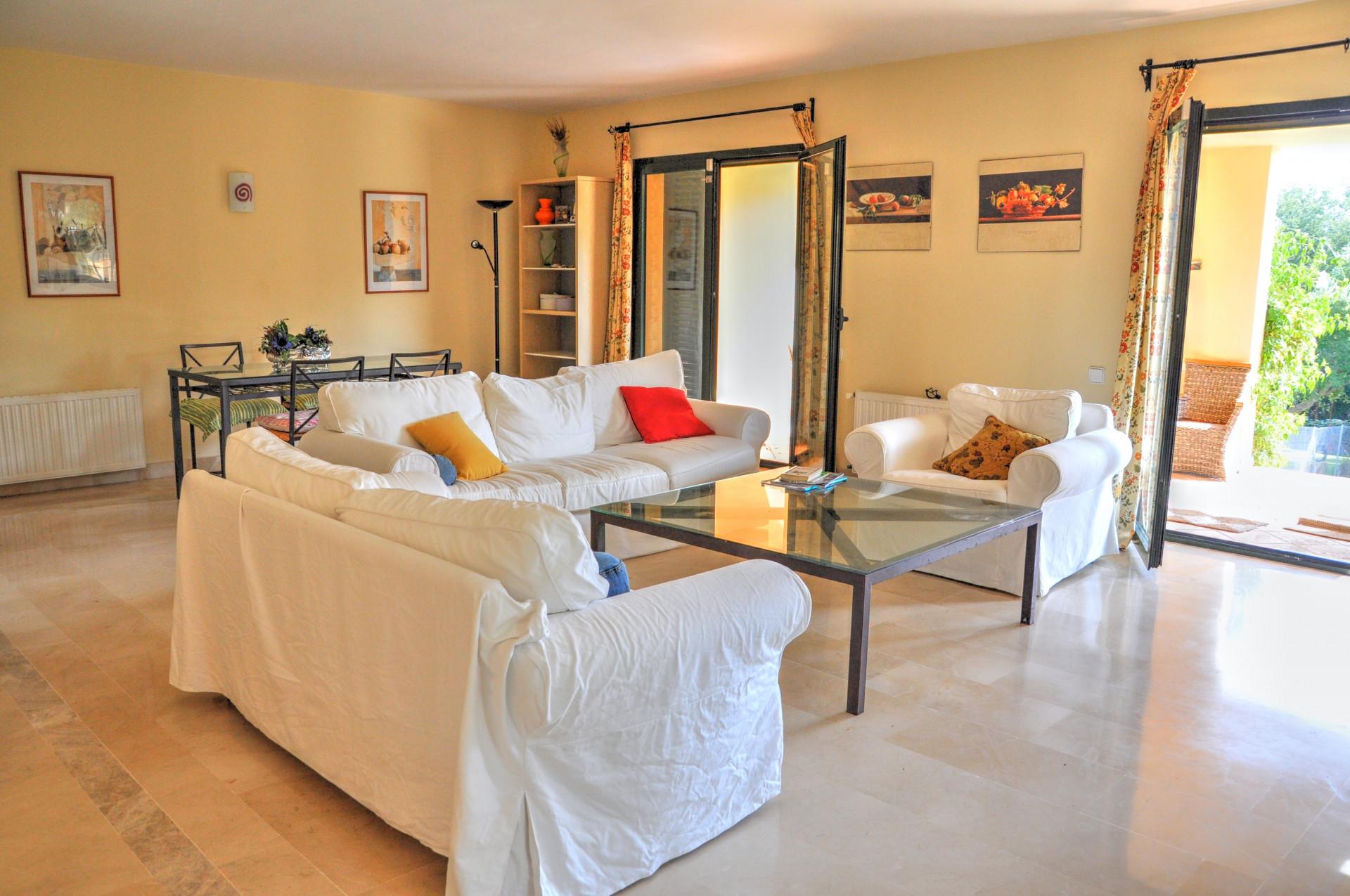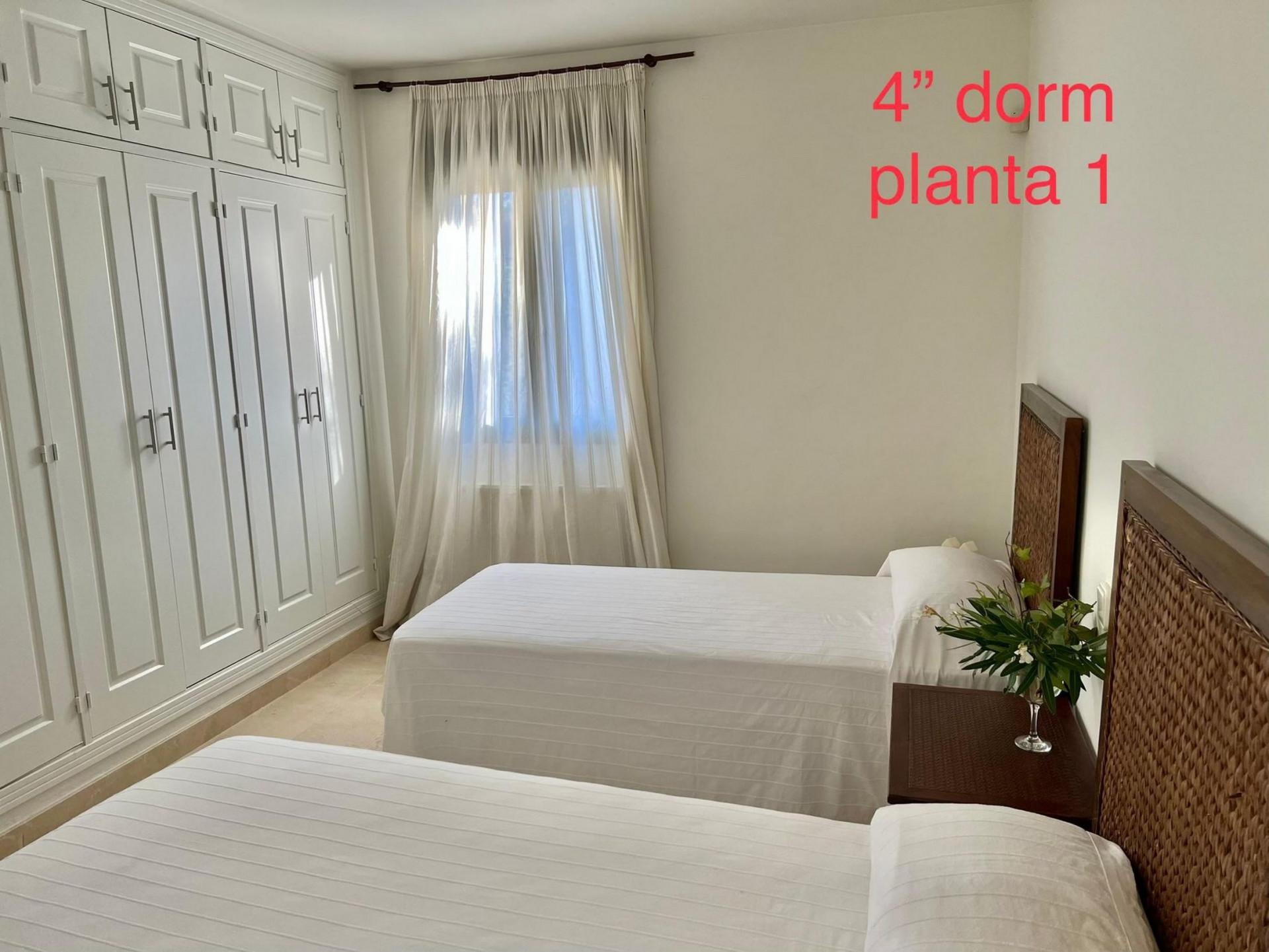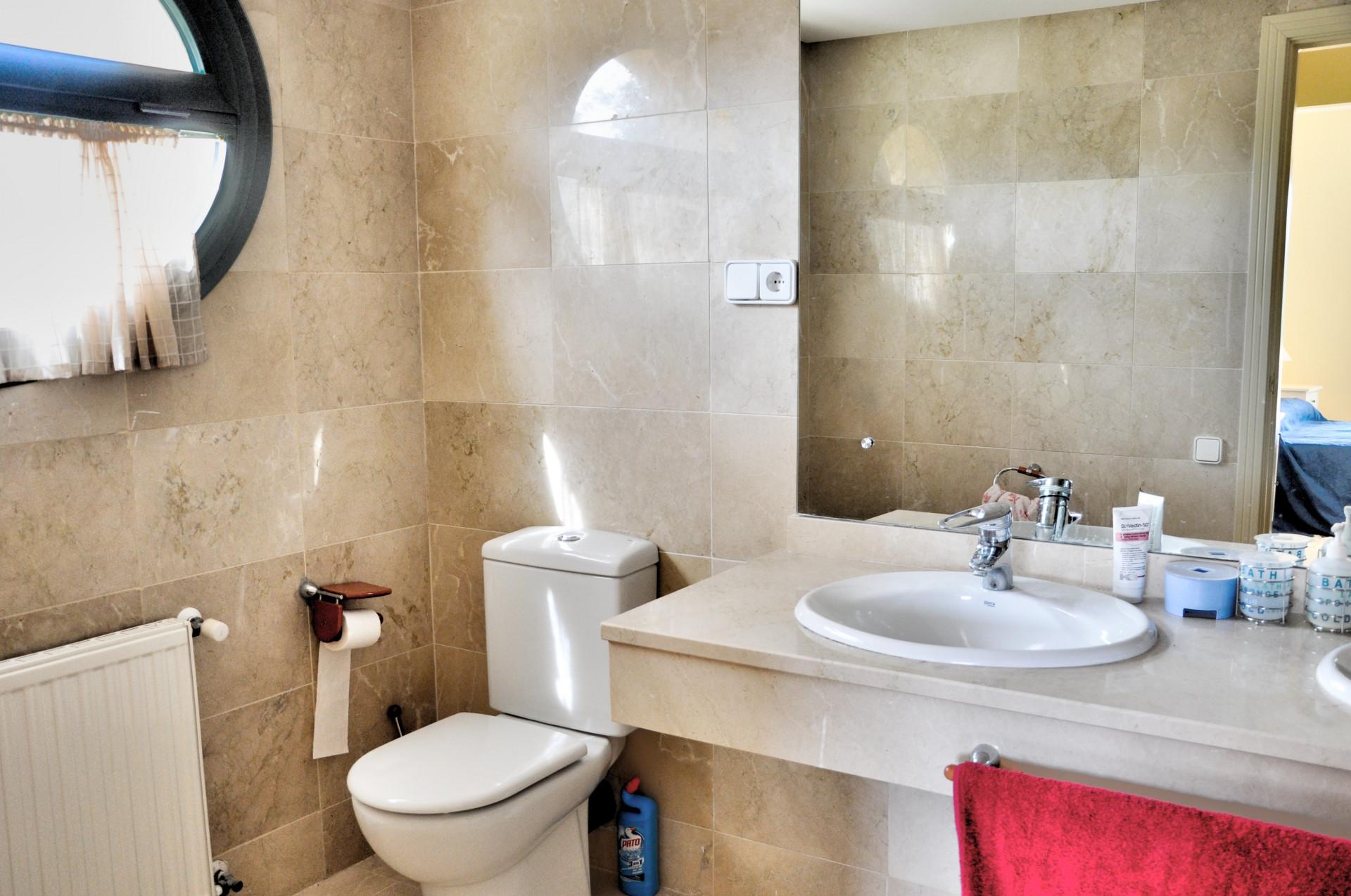 This semi-detached house is situated at number eight within the Sotogolf urbanization. It boasts a generous 2000 square meter plot and a spacious 480 square meters of built area, comprising five bedrooms and four bathrooms. On the first floor, you'll find the entrance hall, a spacious living room, a well-appointed kitchen, a bedroom, and a bathroom, along with a charming porch offering access to the garden. Ascending to the second floor, you'll discover three bedrooms accompanied by two bathrooms, including the master bedroom with an en suite bathroom. The master bedroom features a king-size bed measuring 2 meters wide, while another bedroom offers two beds measuring 1.35 cm each, and the third bedroom has two beds measuring 90 cm each. The master bedroom and one additional bedroom share a terrace overlooking the scenic cork oak forest, facing east, while the third bedroom enjoys its own terrace facing west. The attic space presents another bedroom equipped with a trundle bed and an additional 90 cm bed, along with a double bathroom. The garage provides ample space for four cars, along with a designated children's playroom. Just a minute's stroll from the house, residents can access the urbanization's swimming pool and paddle tennis court, ensuring leisure and recreational amenities are close at hand.